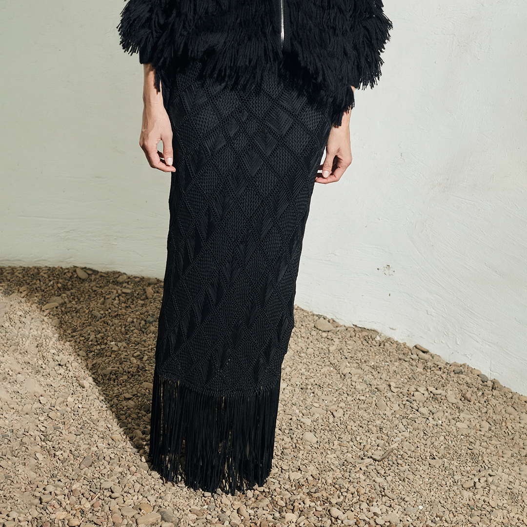 FALDA DE MACRAME TEXTURA DE ROMBOS